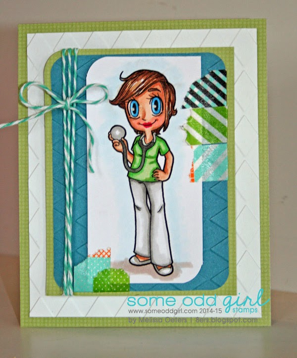 I used one of the newer Some Odd Girl DIGIs, Nurse Kaylee. I think she could be Dr. Kaylee too if you wanted. I decided to randomly stick some ripped washi tape on my project. My thought was sometimes you go to the clinic to get patched up, right?!